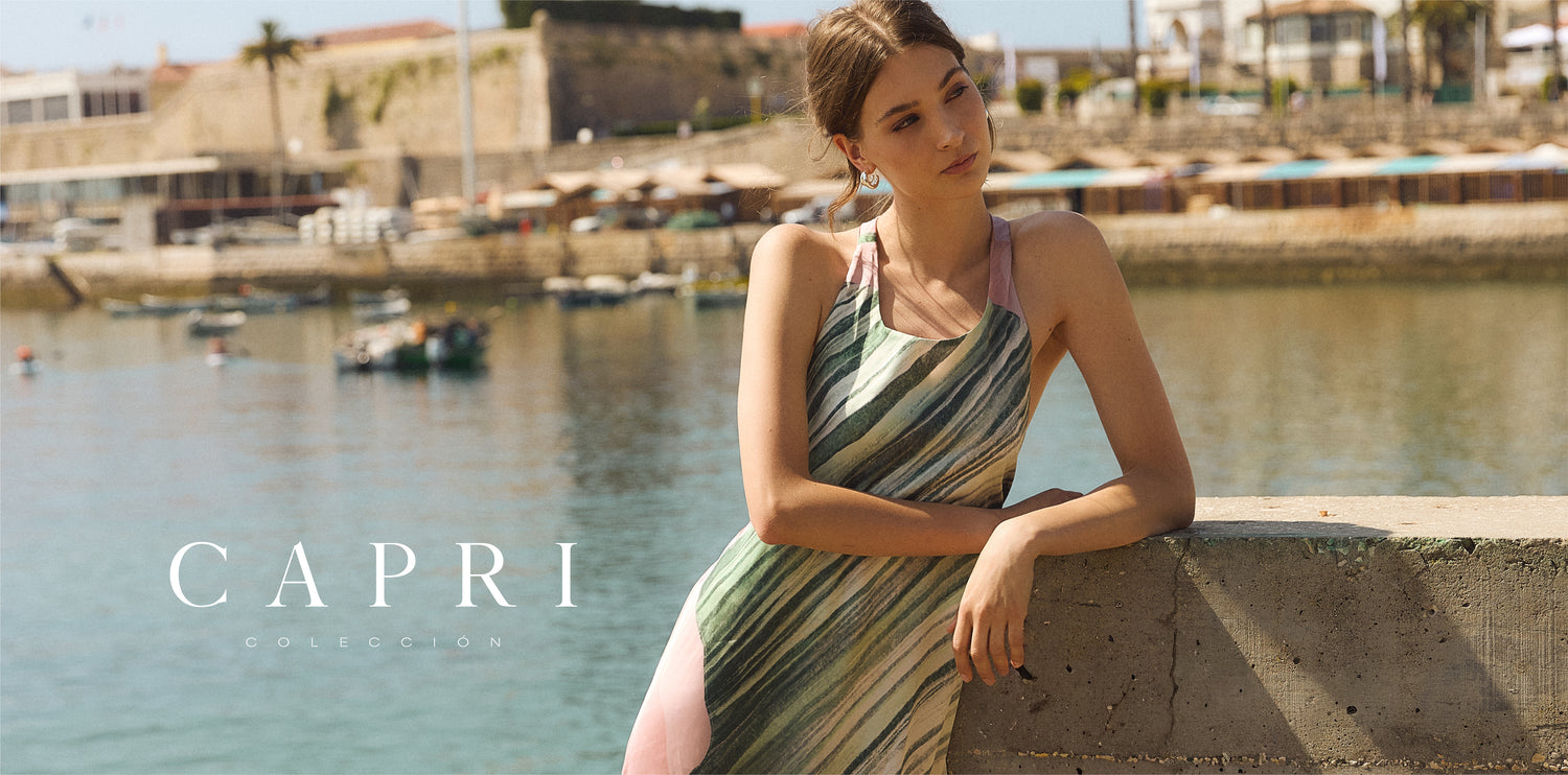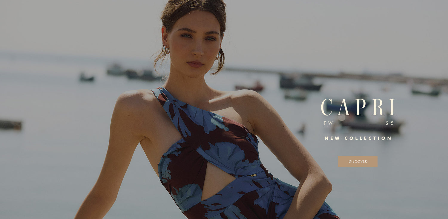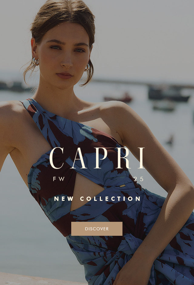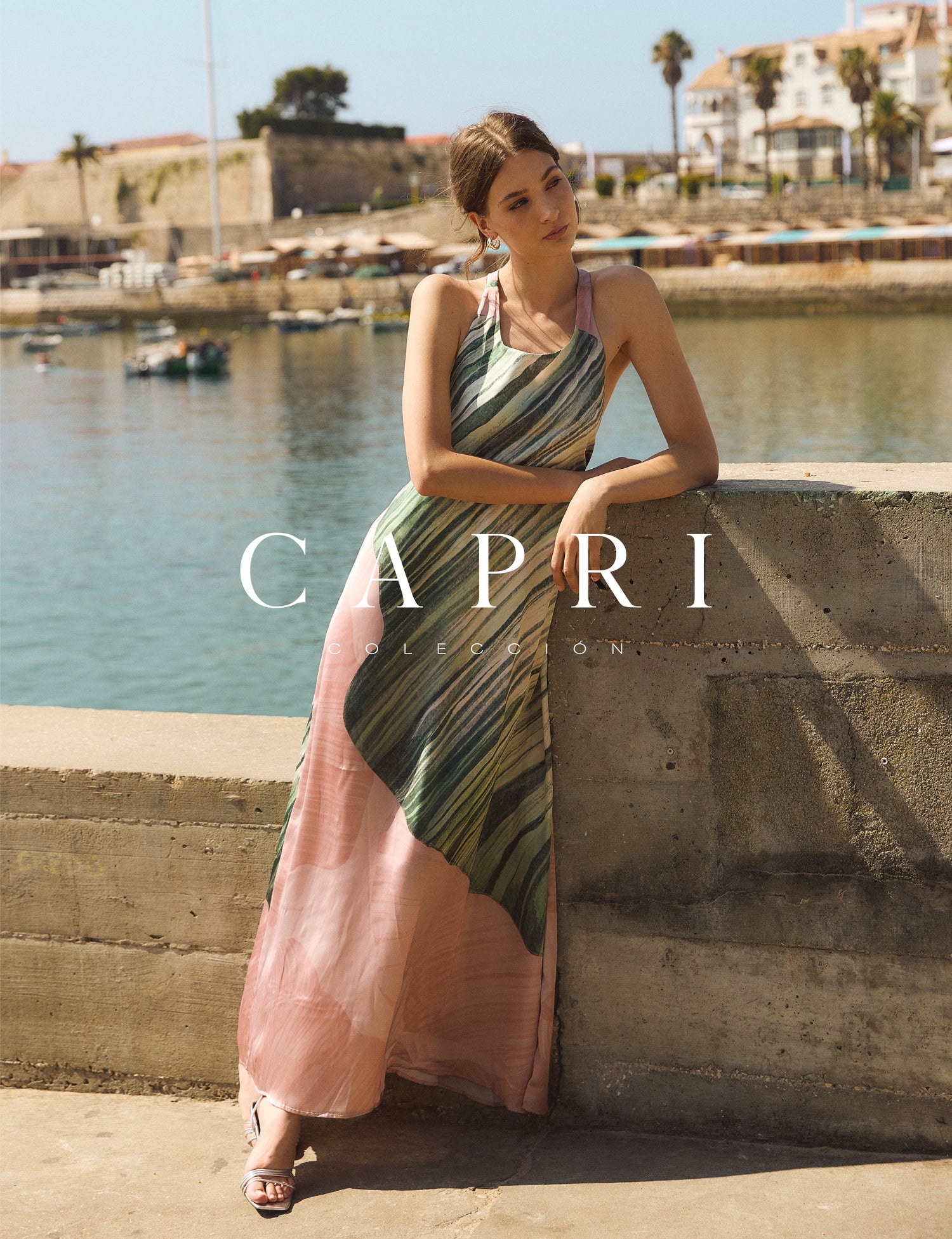 Esta colección nace del encanto de la isla de Capri en otoño, cuando los turistas se han ido y la isla descansa en una calma que recuerda a la feminidad. Sus siluetas evocan el movimiento de las olas: plisadas que imitan su vaivén, sedas suaves como el mar Mediterráneo y algodones frescos que capturan la brisa de Capri.