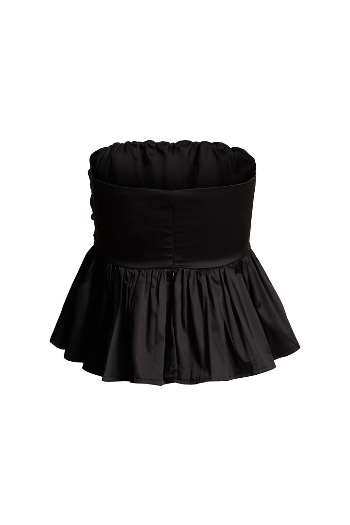 Top negro , diseño globo, diseño plisado.