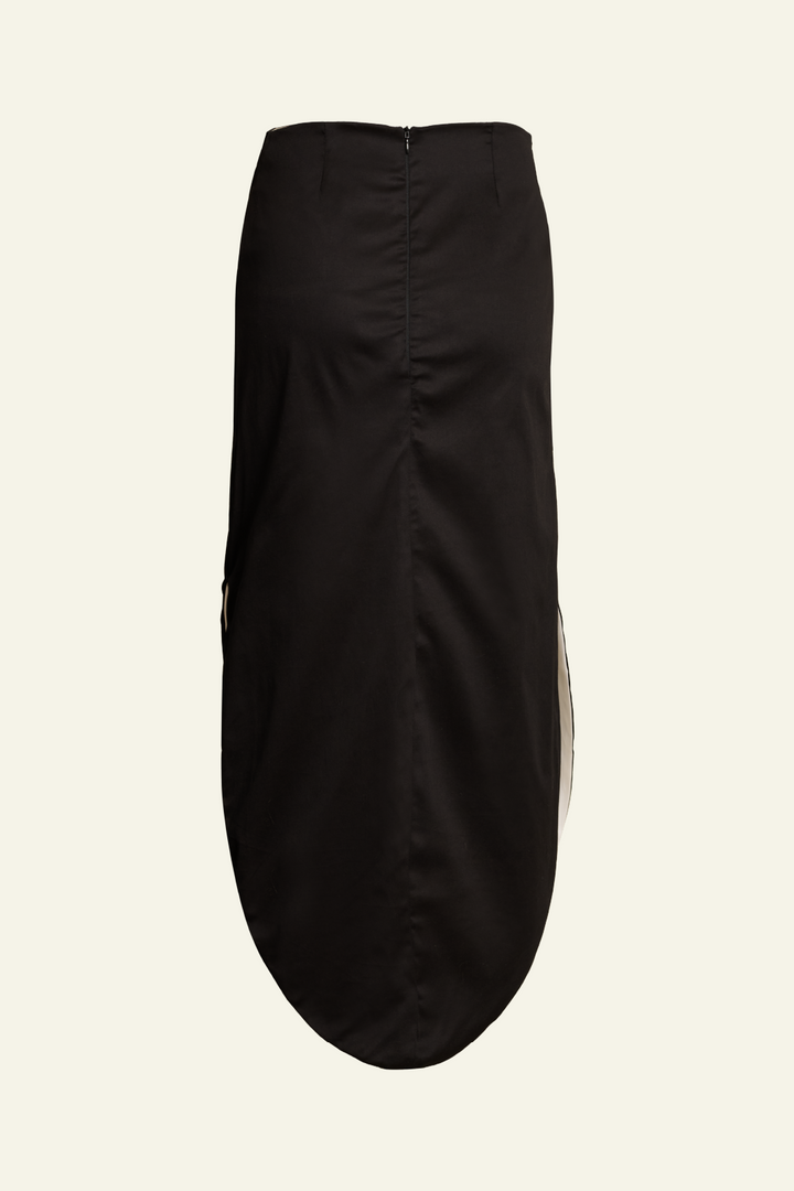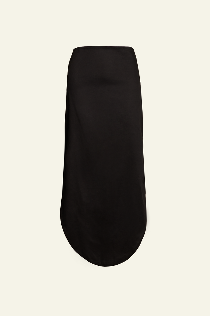 Falda larga en negro con corte fluido y acampanado. Incluye cierre trasero. Ideal para cualquier ocasión.