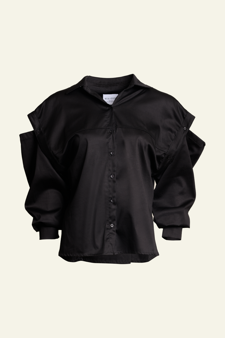 Top manga larga con diseño degradado, cuello en V. Abotonado en la parte delantera , mangas holgadas y semiabiertas con puños cerrados.
