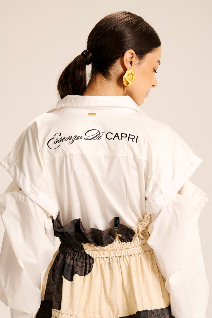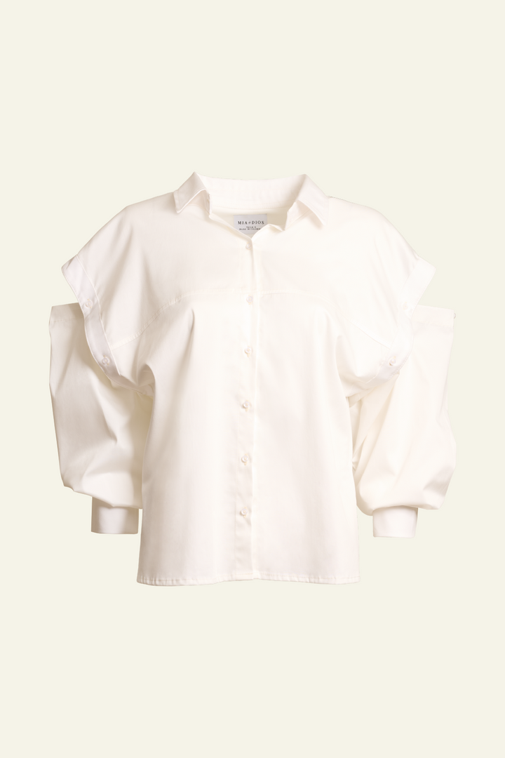 Top manga larga con diseño degradado, cuello en V. Abotonado en la parte delantera , mangas holgadas y semiabiertas con puños cerrados.